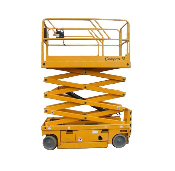 Esta plataforma de tijera eléctrica de 12 metros ofrece una velocidad máxima de precisión en los movimientos.